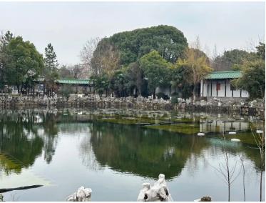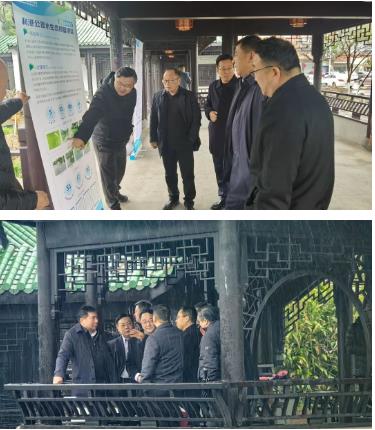 考察團來到由雙良環(huán)境全力打造的江陰水系新時代保護治理樣板工程項目“利港公園水生態(tài)修復(fù)項目”實地踏勘。