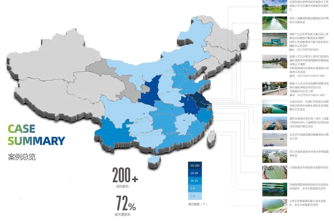 截止2019年底,公司已完成水治理項(xiàng)目200余個(gè),分布于全國(guó)23個(gè)省市自治區(qū),其中包含飲用水源地水質(zhì)提升、湖泊生態(tài)治理、河道治理等領(lǐng)域。