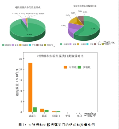 01石墨烯/TiO2功能材料對(duì)水體中的藻類和細(xì)菌的總體生物量有顯著的抑制作用,對(duì)藻類的生長(zhǎng)量產(chǎn)生了86.4%的抑制,從藻種門(mén)類分析可見(jiàn),藻類多樣性卻顯著增加了;對(duì)細(xì)菌的生長(zhǎng)產(chǎn)生了近95%的抑制作用。