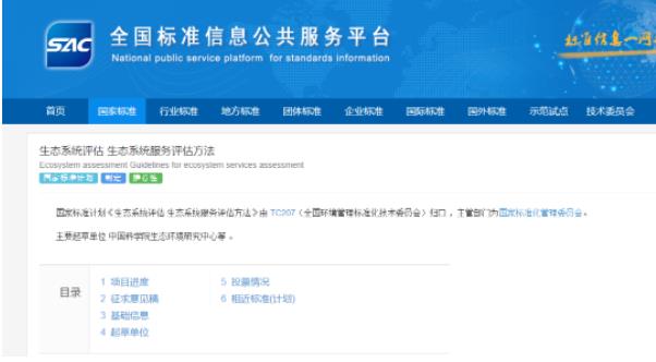 2023年5月31日下午,全國(guó)環(huán)境管理標(biāo)準(zhǔn)化技術(shù)委員會(huì)(SAC/TC 207)審查通過了《生態(tài)系統(tǒng)評(píng)估 生態(tài)系統(tǒng)服務(wù)評(píng)估方法》國(guó)家標(biāo)準(zhǔn),該標(biāo)準(zhǔn)由中科院生態(tài)環(huán)境研究中心和中國(guó)標(biāo)準(zhǔn)化研究院等單位共同聯(lián)合起草。
