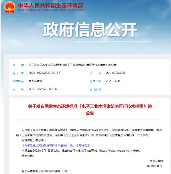 04關(guān)于發(fā)布國家生態(tài)環(huán)境標(biāo)準(zhǔn)《電子工業(yè)水污染防治可行技術(shù)指南》的公告