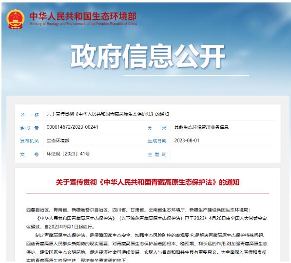 《中華人民共和國青藏高原生態(tài)保護法》(以下簡稱青藏高原生態(tài)保護法)已于2023年4月26日由全國人大常委會審議通過,自2023年9月1日起施行。