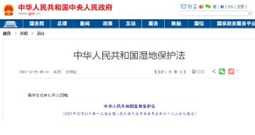 ●我國首次專門針對濕地生態(tài)系統進行的立法保護?!稘竦乇Wo法》經第十三屆全國人民代表大會常務委員會第三十二次會議通過,自6月1日正式施行。