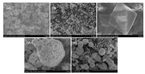 QZ2新型光催化網_水庫治理_河道治理_水生態(tài)修復_水環(huán)境治理與修復_江蘇雙良環(huán)境科技有限公司QZ2新型光催化網_水庫治理_河道治理_水生態(tài)修復_水環(huán)境治理與修復_江蘇雙良環(huán)境科技有限公司圖3. MOF的SEM圖像:(a)ZIF-8,(b)Ag / AgCl @ ZIF-8,(c)MOF-235,(d)Bi2WO6/MIL-100(Fe),(e)BiOBr/MOF-5