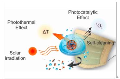 W5A新型光催化網(wǎng)_水庫治理_河道治理_水生態(tài)修復(fù)_水環(huán)境治理與修復(fù)_江蘇雙良環(huán)境科技有限公司自從COVID-19大流行爆發(fā)以來,對口罩的需求和處置量不斷增加,已導(dǎo)致可觀的經(jīng)濟成本和環(huán)境影響。在這里,我們將紫膠/銅納米顆粒(CuNPs)的雙通道噴霧輔助納米涂層混合物應(yīng)用于無紡布手術(shù)口罩,從而增加了表面的疏水性并排斥了水滴。所得表面顯示出優(yōu)異的光活性(兼具光催化和光熱特性),具有抗微生物作用,賦予口罩以重復(fù)使用性和自滅菌能力。在陽光照射下,此光敏抗病毒口罩(PAM)的溫度迅速升高至> 70°C,產(chǎn)生高水平的自由基,破壞了納米級(100 nm)病毒樣顆粒的膜,并使面罩自潔且可重復(fù)使用。這種PAM設(shè)計可以在對抗COVID-19大流行時提供有效的保護,以防止病毒氣溶膠的傳播。