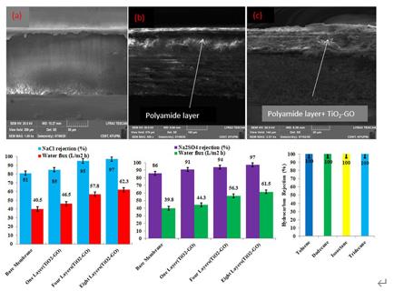 2的摻入由于膜表面電荷、粗糙度和親水性的變化,膜基質(zhì)中的 -GO 復(fù)合物增強了膜性能,達到了62 LMH (Lm -2 h -1 ) 滲透通量、97% 的鹽截留率和 100% 的油截留率。