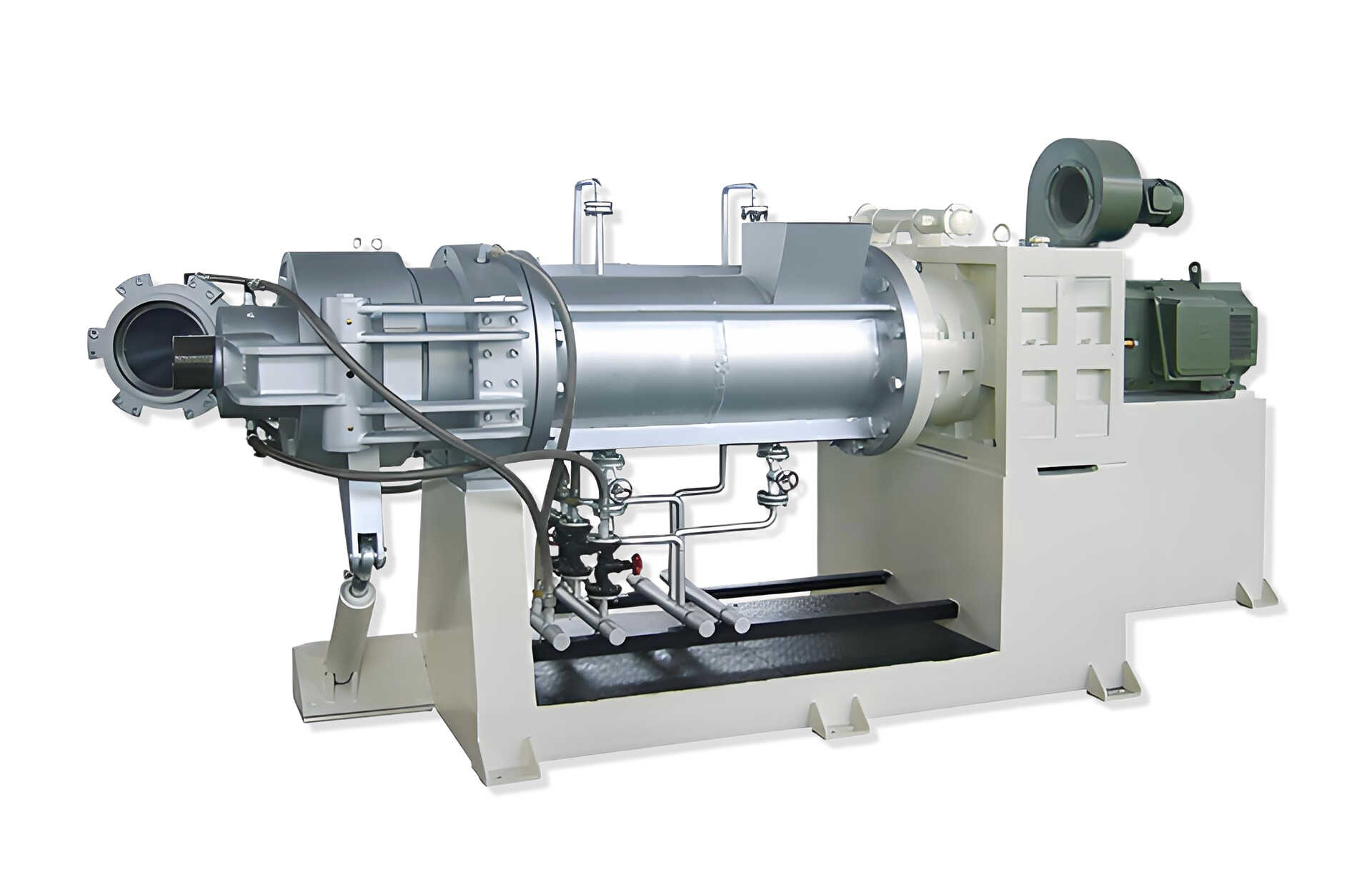 經(jīng)過過濾塑化的塑料原料進入軋機,進行鐵屑、石材等過濾,保證軋機輥子的安全。通過螺桿擠出,塑料可以均勻塑化。雙頭更換作快速簡便。停電時模頭自動開啟裝置,保證了機器的安全。