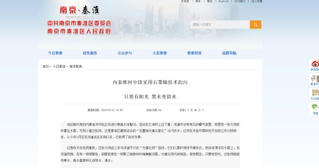 南京日?qǐng)?bào)一篇名為“內(nèi)秦淮河中段采用石墨烯技術(shù)治污——只要有陽光 黑水變清水”的新聞報(bào)道引起了讀者們的興趣。2gk新型光催化網(wǎng)_水庫治理_河道治理_水生態(tài)修復(fù)_水環(huán)境治理與修復(fù)_江蘇雙良環(huán)境科技有限公司