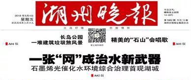 湖州晚報:一張“網(wǎng)”成治水新武器 石墨烯光催化水環(huán)境綜合治理首現(xiàn)湖城CDg新型光催化網(wǎng)_水庫治理_河道治理_水生態(tài)修復(fù)_水環(huán)境治理與修復(fù)_江蘇雙良環(huán)境科技有限公司